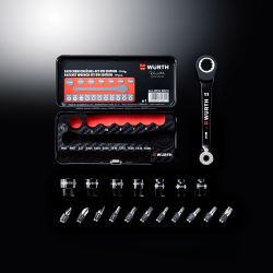 Práctica y compacta caja metálica, se puede llevar cómodamente en cualquier bolsillo del pantalón. Herramientas fabricadas en acero al Cromo-Vanadio con una superficie acabado en negro de alta calidad. Caja y llave estampada con la firma de Reinhold Würth. Inserto de espuma rotulada con acabado de carbono para una mejor sujeción y fácil limpieza.